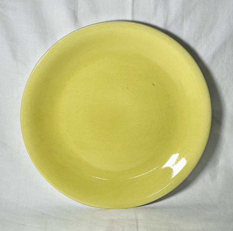 Gele kom, binnen wit, licht beboterd 22 cm doorsnede , hoogte 9 cm maat 5 gemerkt onderaan
